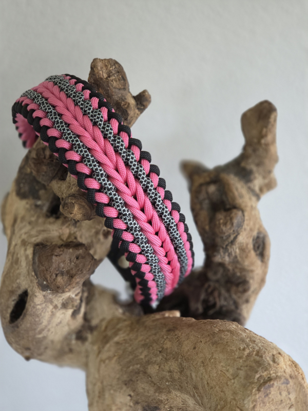 Paracord halsbanden in verschillende kleuren en motieven. Deze banden worden zorgvuldig met de hand geknoopt en zijn zeer sterk.